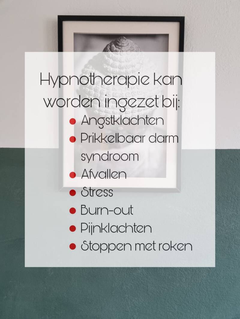 Hypnotherapie is aangetoond werkzaam bij een breed scala aan problemen. Vooral bij vage en onbegrepen klachten zoals bij leegte, matte of verdrietige gevoelens, bij diffuse angsten en zeurende pijnen.